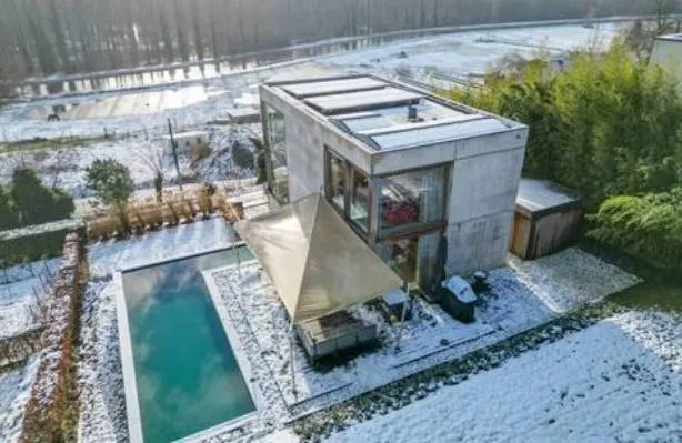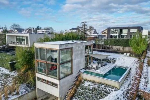 De makelaar omschreef de bel-etagewoning als “een architecturaal pareltje waar comfort, stijl en rust samenkomen”, gelegen op een “unieke locatie” met een panoramisch zicht over de Demervallei. Het huis beschikt over drie slaapkamers, twee badkamers en grote raampartijen die zorgen voor veel lichtinval. Blikvanger is ongetwijfeld het infinity-zwembad dat uitkijkt over de vallei.